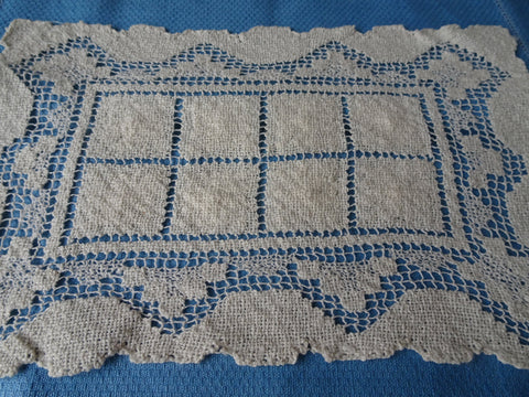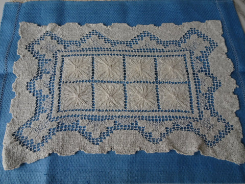 GORGEOUS Vintage Hand Made Lace Table,Buffet or Dresser Doily,Creamy Off White Darned Lace Hand Knotted Lace,French Farmhouse Vintage Linens