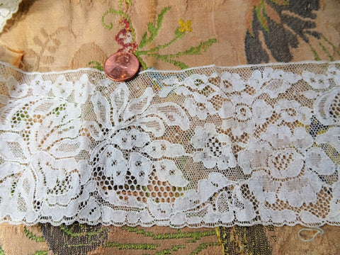 LOVELY Antique FRENCH Fine Lace Trim Flounce,Intricate Pattern For Bridal Dress,Dolls,Flapper Dress,Heirloom Sewing,Collectible Vintage Lace