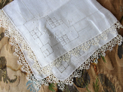 LOVELY Antique Tatted Tatting Lace Edge Handkerchief Hand Embroidered Hanky,Perfect Hankie For Bride To Be,Bridal Hanky Collectible Hankies