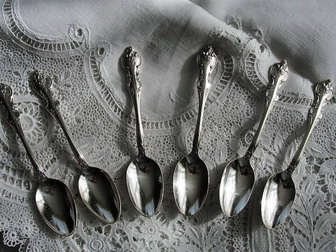 Lovely ORLEANS Silver Plate 6 Coffee SPOONS Espresso Demitasse Flatware 1847 Rogers Bros Silverware Coffee Spoons Set Collectible Silver
